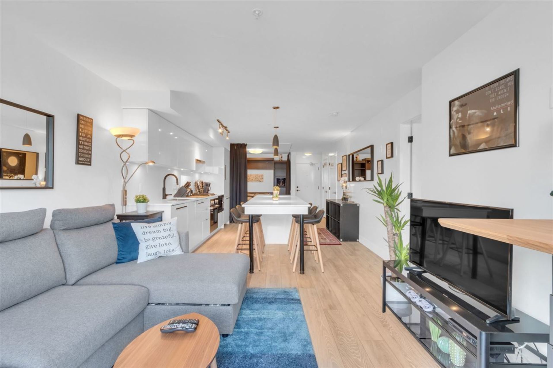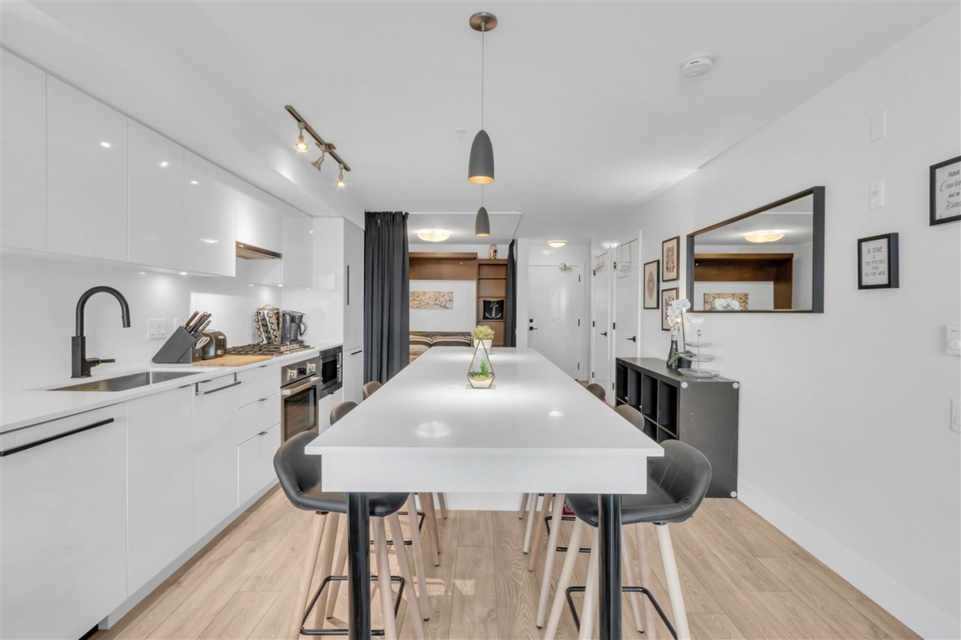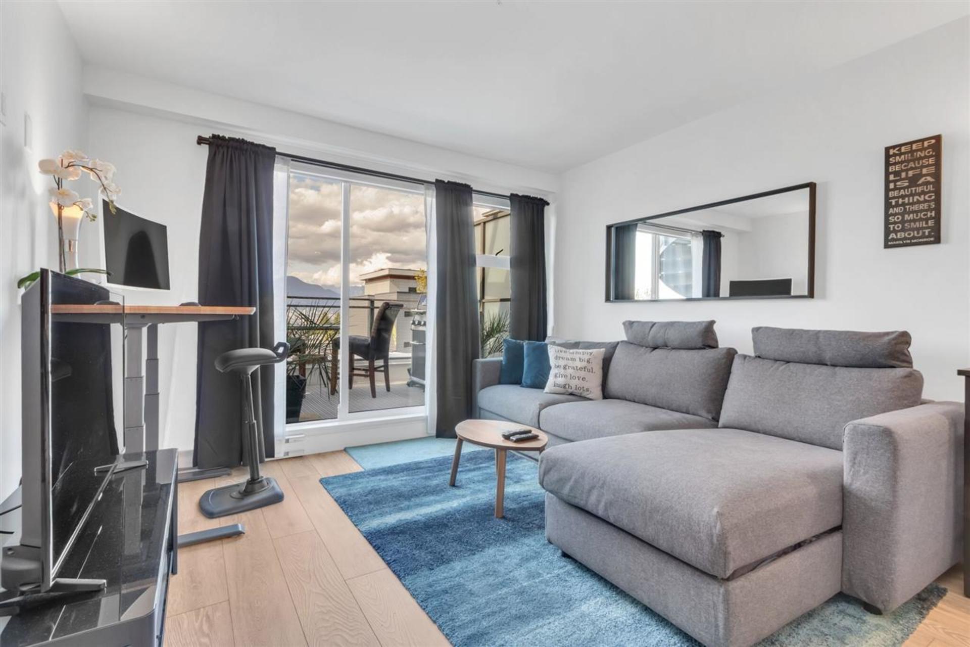 Welcome to Midtown Modern, completed in 2019 by PortLiving. A truly unique large 1-bedroom Penthouse with almost 850 square feet of outdoor space including a 700 sq.ft rooftop patio with breathtaking City and Mountain Views. This home features 9-ft ceilings, high end appliances and finishings, laminate flooring, quartz countertops and 2 full spa-inspired bathrooms. The rooftop oasis features several large planter beds perfect for growing vegetables, 2 gas hookups for your fire pit and bbq, and 2 hose connections. A Murphy-bed has been installed in the open flex space - this area could easily be enclosed with sliding partition walls to create a home office or 2nd sleeping area. Included is a storage locker and EV Charging Station-ready parking space. HD Video Tour: https://bit.ly/3bPRvAR