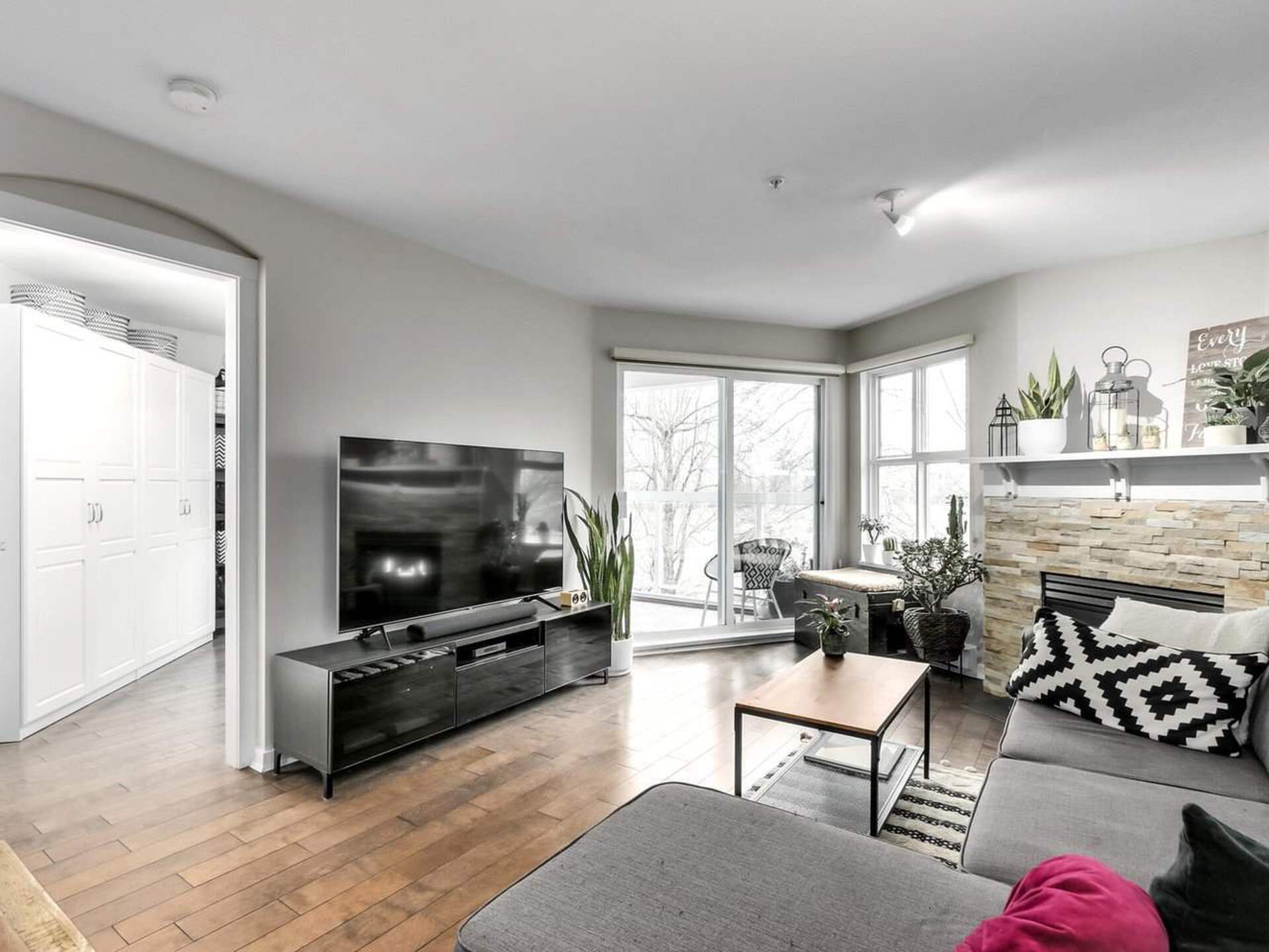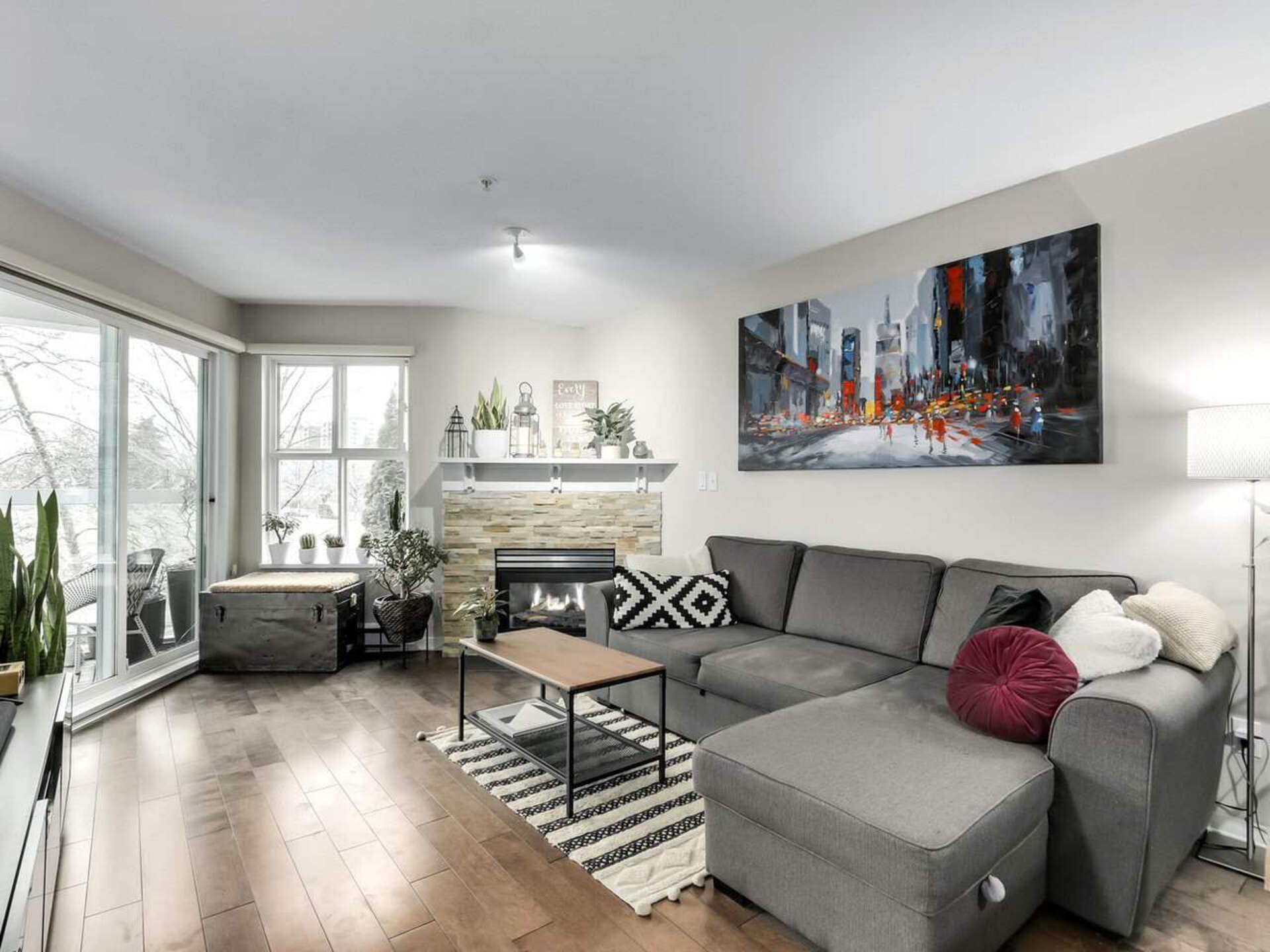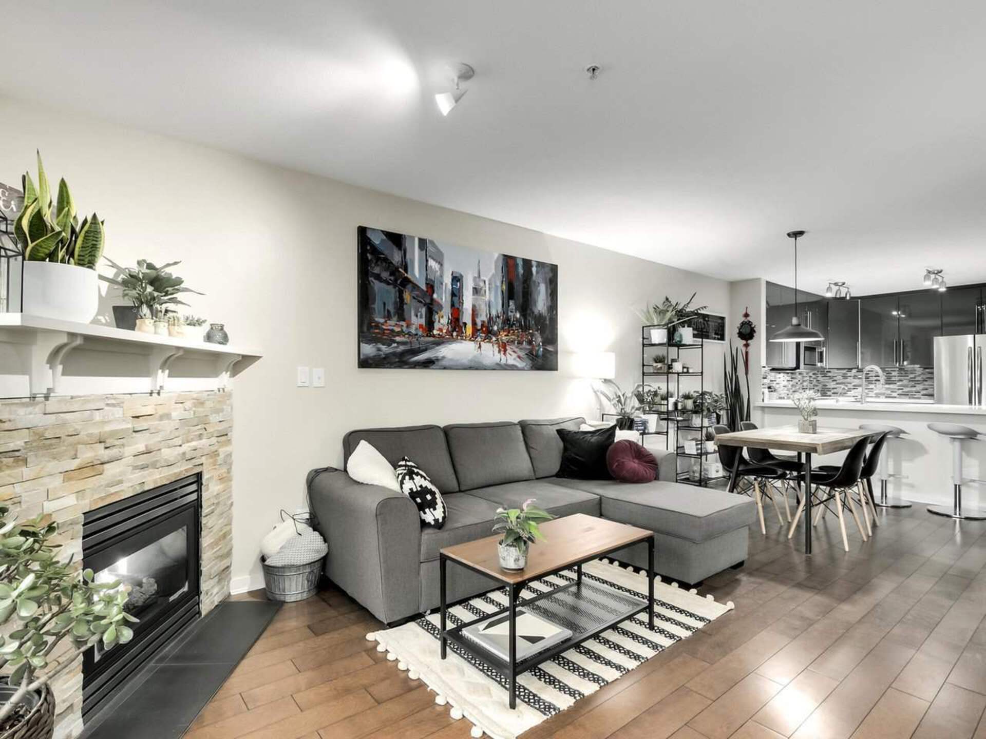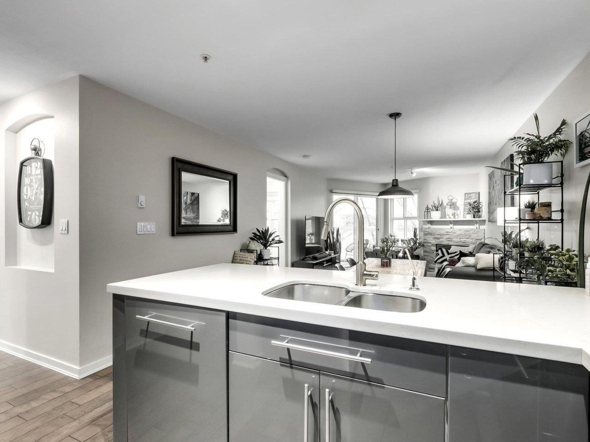 Rare find In the River District! This updated 2 bedroom, 2 bathroom home is a must-see. An open kitchen features quartz countertops, upgraded cabinets and stainless appliances. Stay warm In the winter in the cozy living room with gas fireplace, while enjoying spectacular river views and sunsets from this west-facing home. The master suite includes a walk-in closet and updated bathroom. Enjoy worry- free living for years to come In this fully rain screened, safe, pet friendly, and well maintained building. The location can't be beat - steps to shopping, dining, parks, and walks along the river. First showings by appointment Friday Feb. 5 6-7 PM and Saturday Feb. 6, 230-430 PM.