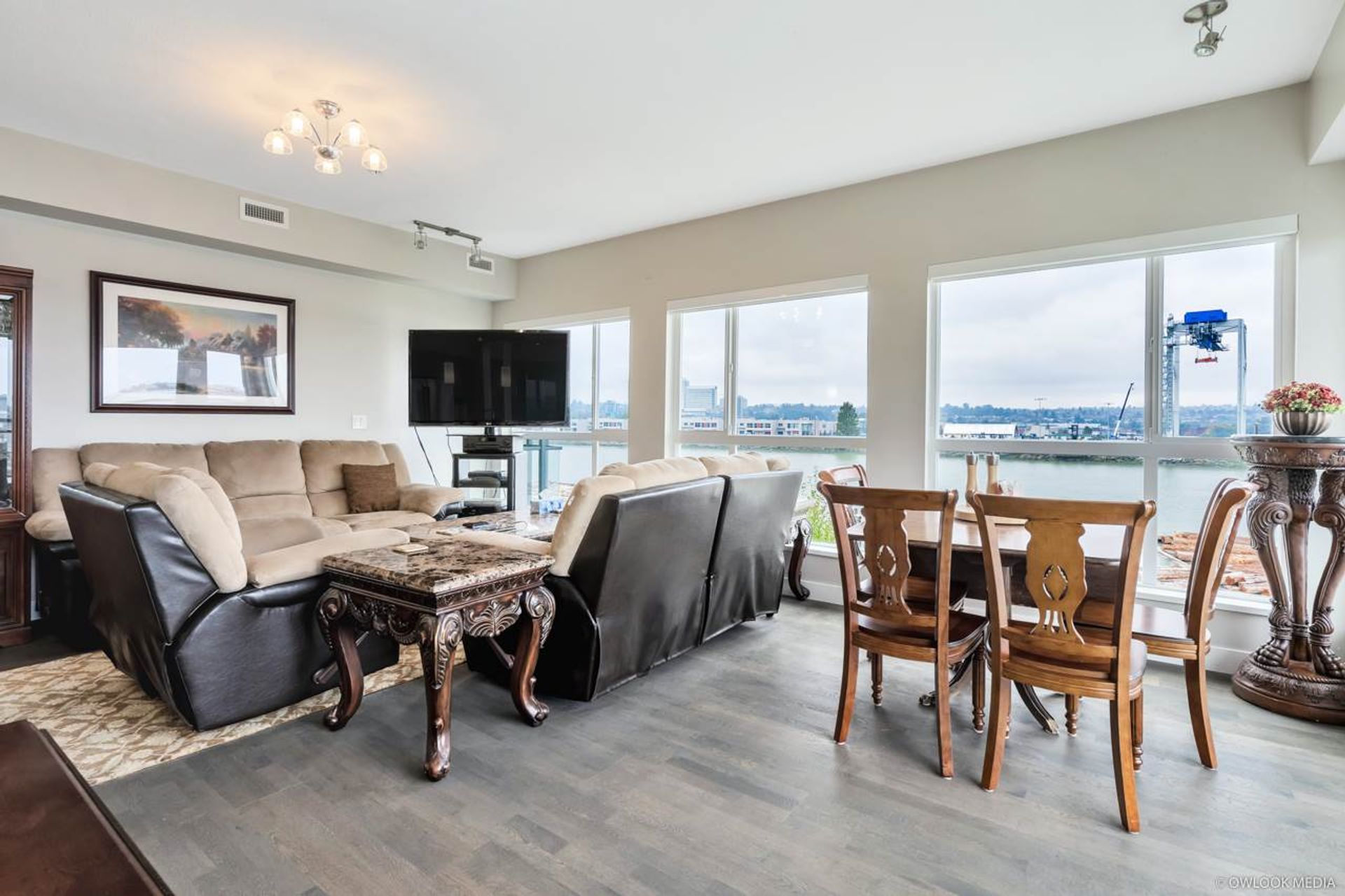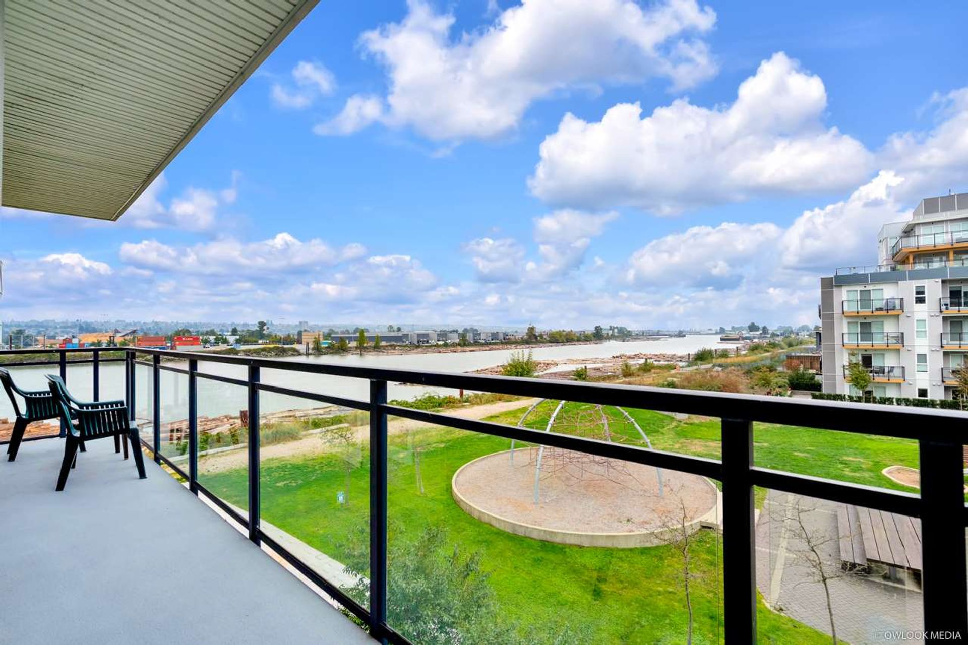 This SPECTACULAR and spacious WATERFRONT 2 bedroom 2 baths home by Park Riviera . NE Corner with stunning unobstructed river, city and park view. Two great large balconies for your outdoor entertainment. With airy 9' ceilings, engineered hardwood flooring, over-sized living and dining area. Super Efficient geothermo heating and air conditioning. This home is designed for year-round comfort. Parc Riviera is an affordable luxury in a natural setting including 4,000 feet of dyke trail and 5 acre of parkland and club house amenities. Less than 5 mins drive, you will get to skytrain, Costco, restaurants and drinks and more.