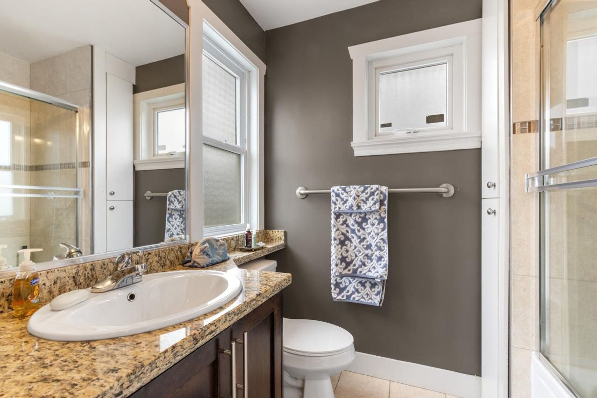 Custom builder’s house in Commercial Drive on a 35x123 view lot! Thru the fenced front garden & Westcoat-style porch, you enter into the grand sitting room w/ gas f/p accentuated by marble + crown detailing. An open-concept chef’s kitchen w/ gas range, granite counters, s/s apps & maple cabinets overlook dining area & xl living room w/ 2nd f/p! 1 of 2 primary bdrms w/ ensuite and WIC sits on main floor, while 2nd is upstairs w/ private patio & view of the mountains! Upstairs is 2 more bdrms, full bthrm & awesome flex space for playroom or office! Downstairs is legal 1-bdrm suite w/ separate entrance + patio, & 2 crawlspaces! Outside is a huge yard, manicured garden & double garage. You’ll love this super central family home, a block away from Lord Nelson Elmtry, groceries, transit & more!