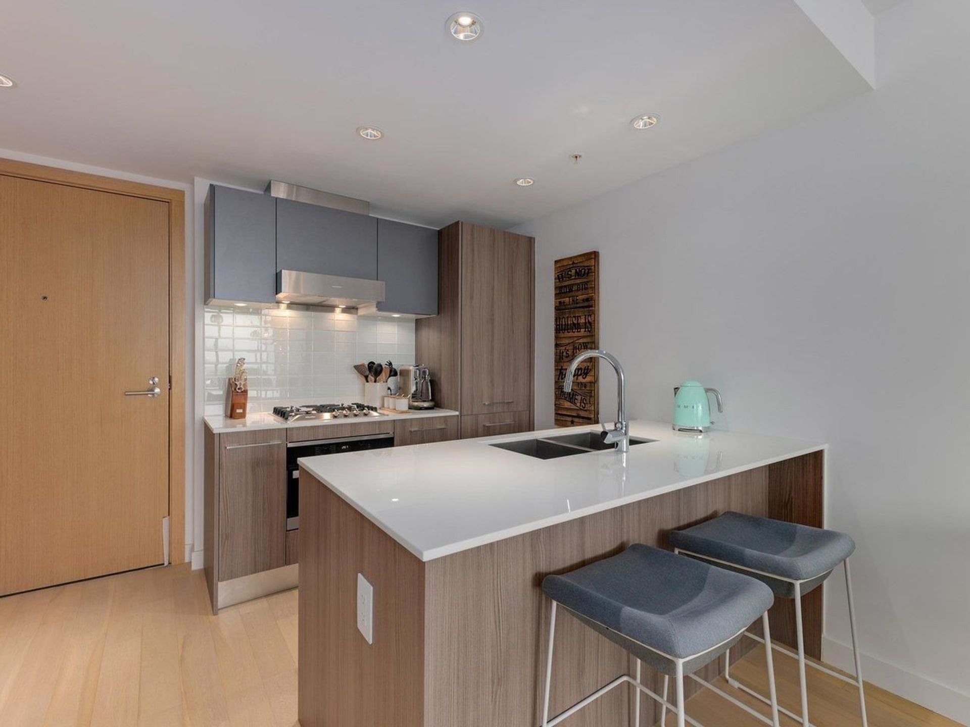 A truly special 1-bedroom home at Westbank's coveted Kensington Gardens. Perfect for first-time homeowners or investors alike. Arguably the most functional 1-bedroom layout in the complex, this well thought out floor plan features ensuite bathroom access, a great den space and west-facing 114 square foot patio with unobstructed sweeping views of downtown and the North Shore mountains. High-end finishings include Blomberg and Miele appliances, Grohe fixtures, roll shutters and geothermal heating and cooling. Building amenities include outdoor pool, hot tub, party room, gym, meeting rooms and concierge. The only 1-bedroom home in the building to come with 2 SIDE-BY-SIDE PARKING and storage locker!!! Easy to show - Open House by appointment Saturday 2-4 PM and Sunday 1-3 PM.