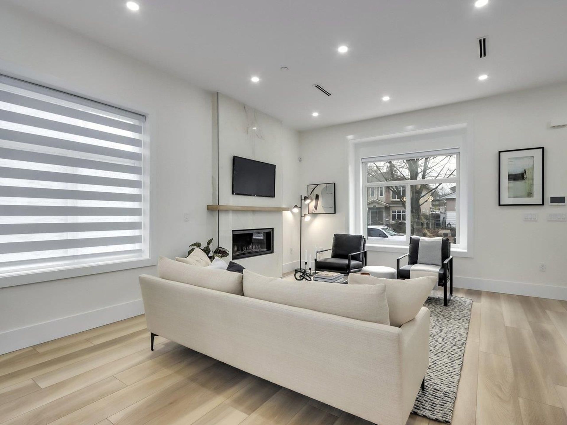 A truly unique brand-new duplex on an over-sized, quiet, corner lot. Only a few blocks from Trout Lake, schools, transit and shopping. Enjoy detached home square footage and room sizes without the price tag. An expansive main floor boasts 10-ft ceilings, separate dining area that will easily fit an a-person table and a huge living room with gas fireplace. The large entertainer's kitchen features Bosch appliances, loads of storage and waterfall countertop. Stay comfortable with AC, radiant heating, HRV and on-demand hot water. Mountain views from the master, ensuite with soaker tub, Riobel and Kohler fixtures, and walk-in closet. Enjoy a well-finished 1-bedroom suite with private entrance - perfect for multi-generational living or income. Open House by appt Thurs. 5-6 PM, Sat/Sun 1-3 PM.