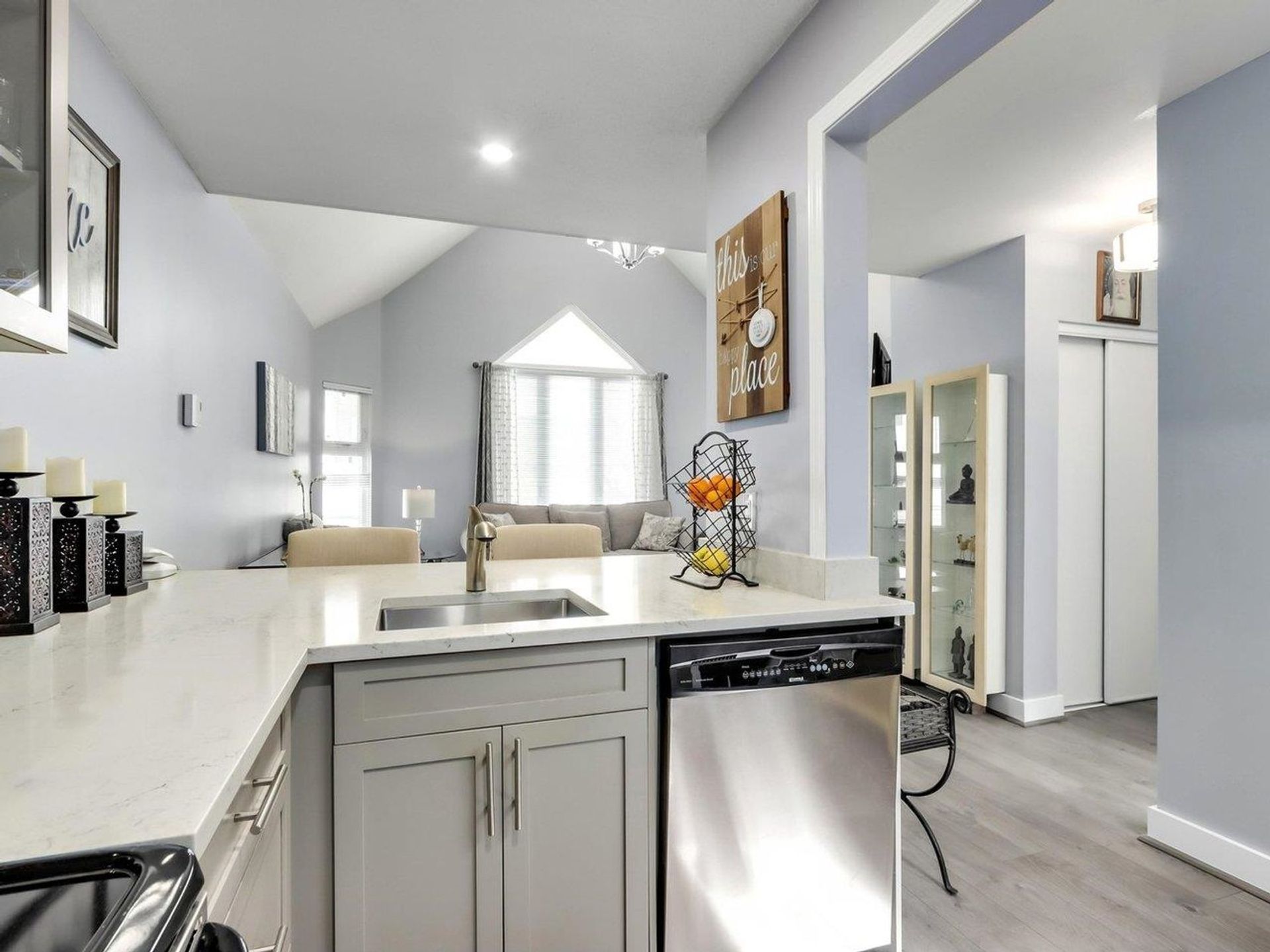 Welcome to this beautiful, turn-key penthouse home in the heart of Central Lonsdale. Immediately feel at home when you step into the bright foyer, flooded with sun from the skylight. Enjoy a bright and airy living room with vaulted 15' ceilings, an oversized balcony with mountain views, and a functionally updated open kitchen space. Ample storage can be found in the laundry room, and stay warm in the winter with the natural gas fireplace. The master bedroom Is large enough for a king-sized bed, and has plenty of closet space. This home Is in pristine condition, freshly painted, and move-in ready. Worry-free living in this rain-screened building, steps from transit, shopping and dining. Pets and rentals allowed. Open House Saturday May 6 and Sunday May 7, 2-4 PM.