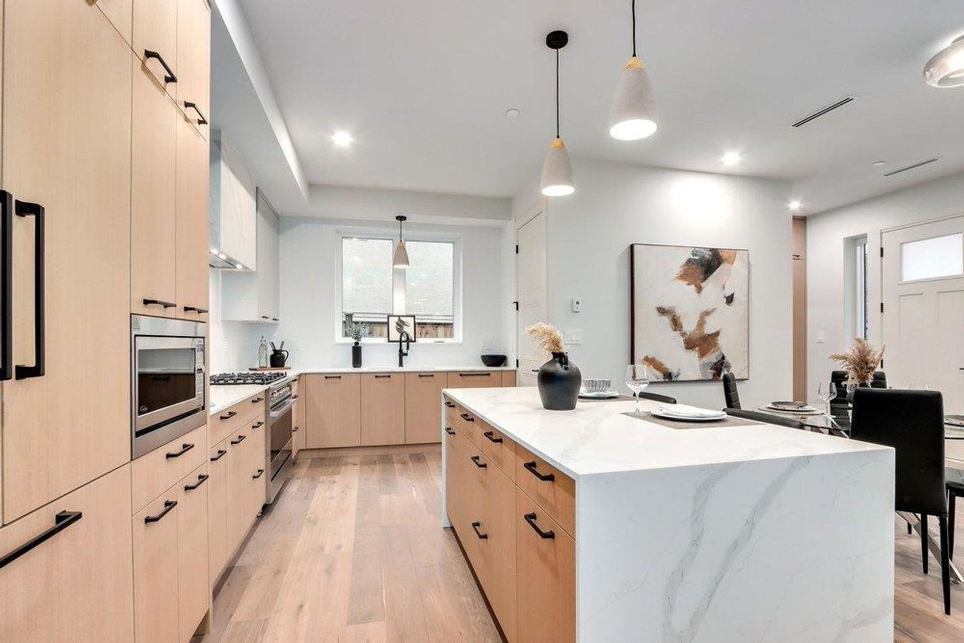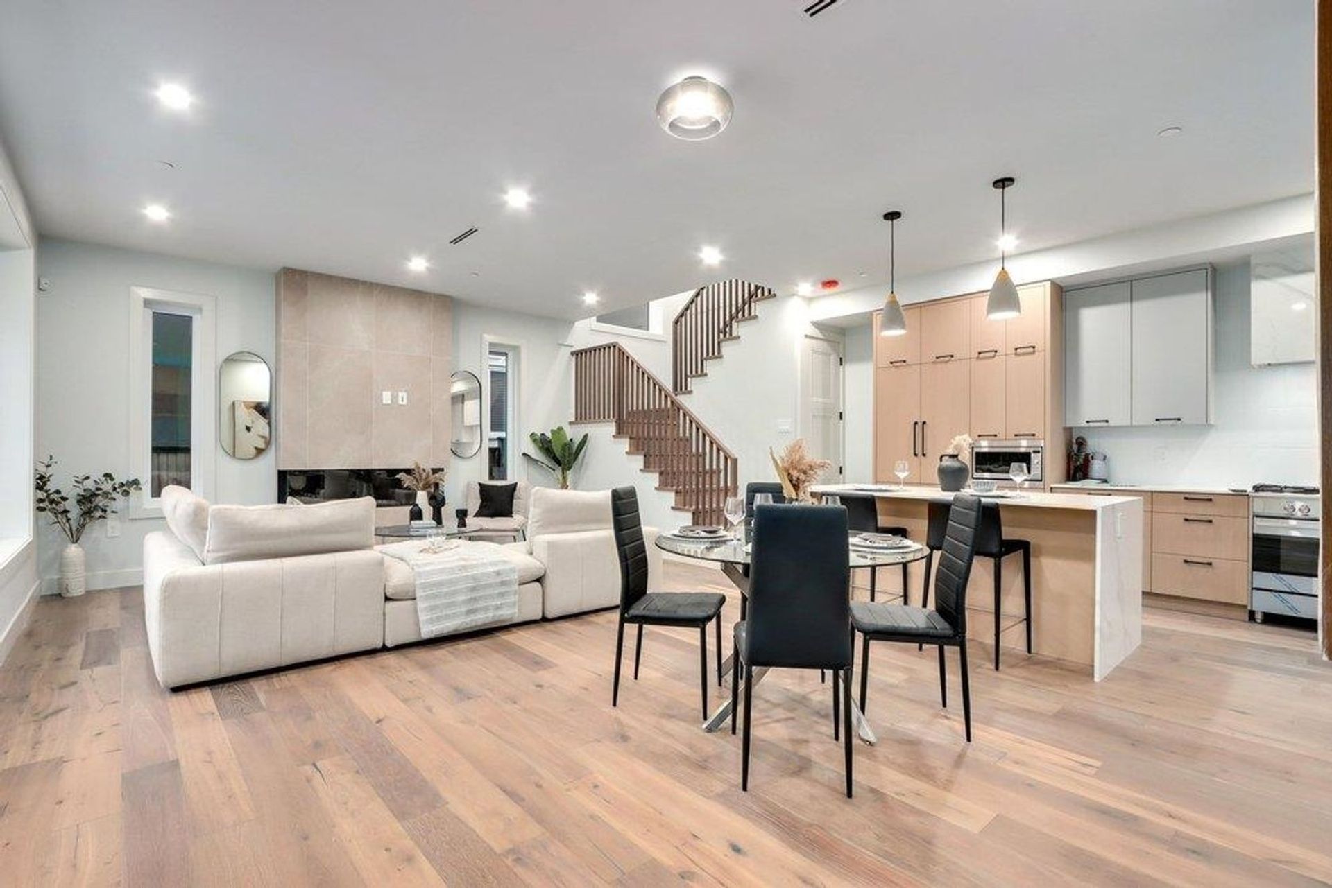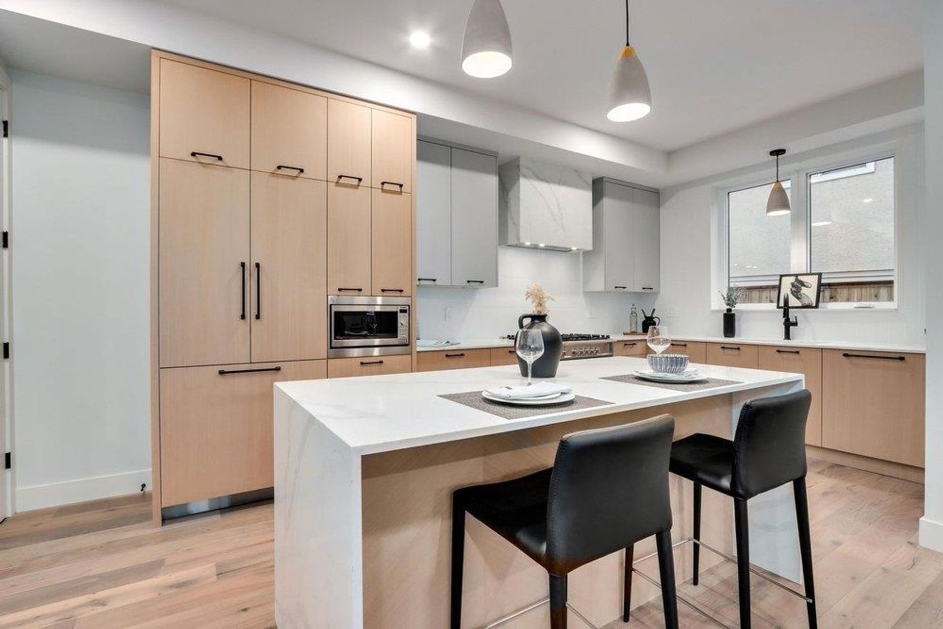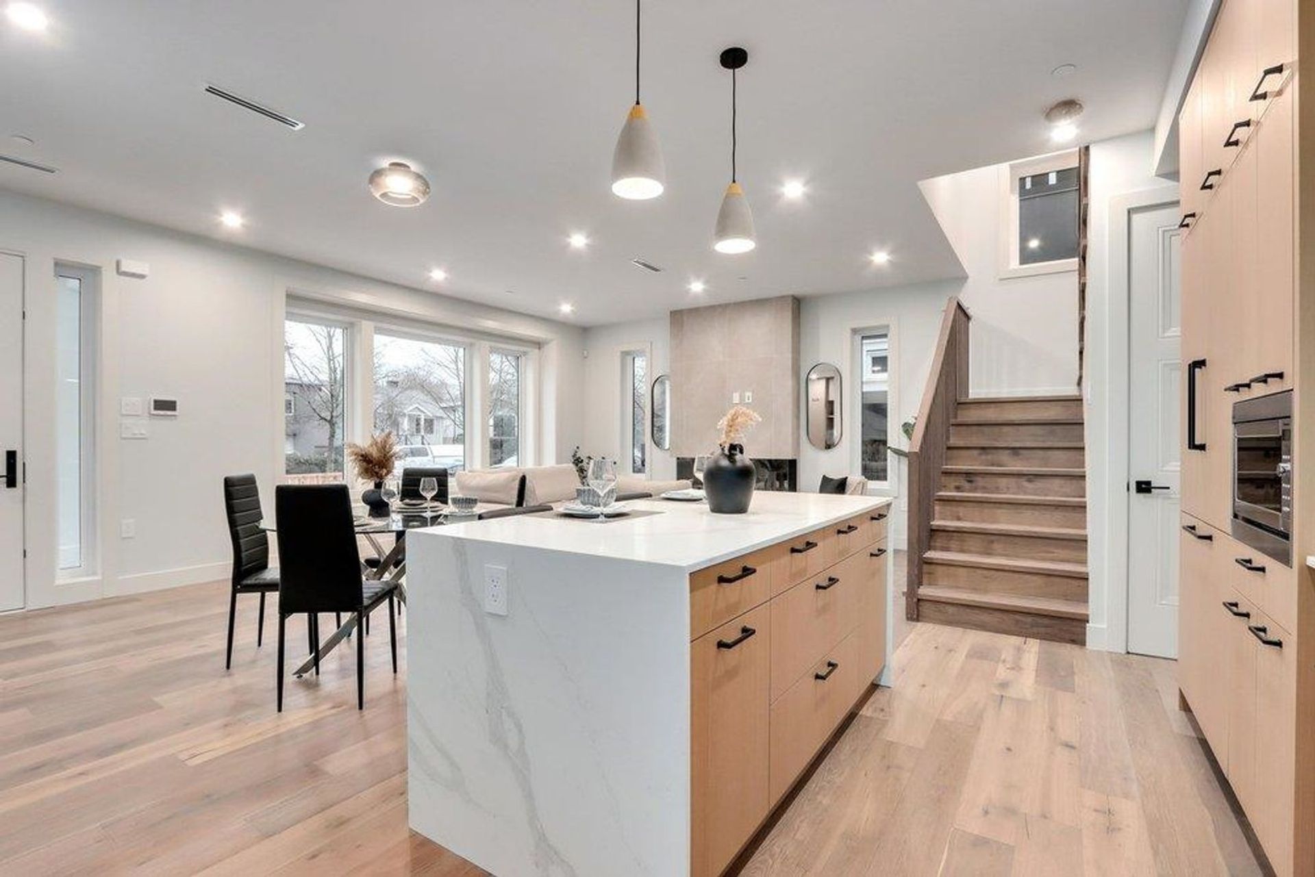 A truly unique offering from HB Homes, only steps from Trout Lake. You'll appreciate size of this home, with a huge chef-inspired kitchen and open living and dining areas perfect for entertaining thanks to a 38' wide lot. A bright, south-facing exposure on a very quiet street. 2 generously sized primary bedrooms, both with ensuite bathrooms, gives the option for a master suite on either the 2nd of 3rd level. Modern comforts include radiant in-floor heating, air conditioning, high-quality engineered hardwood throughout, a generously sized pantry, Fisher Paykel appliances and Kohler and Riobel plumbing fixtures. Open House Saturday and Sunday January 27/28 2-4 PM.