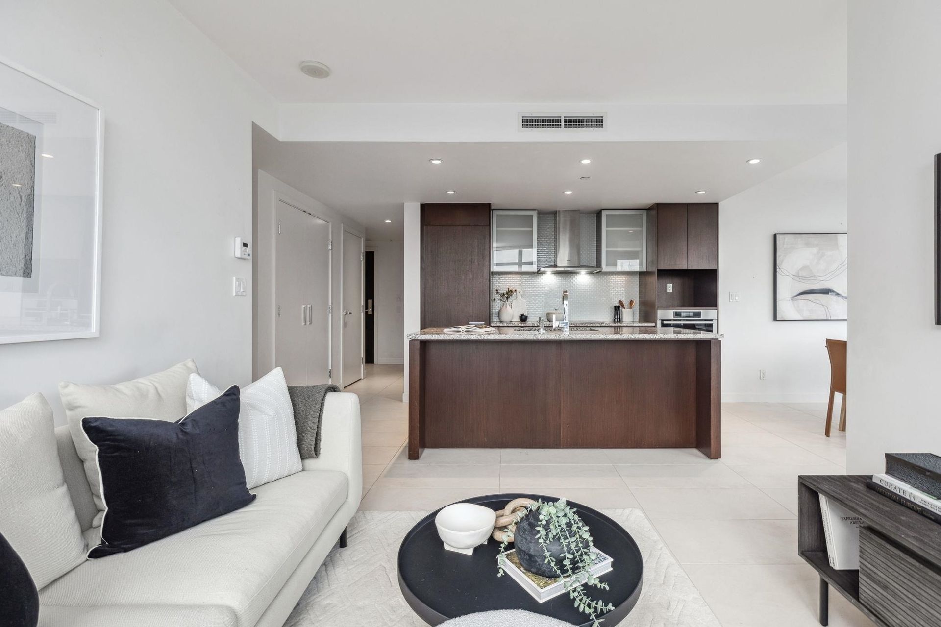Experience elevated urban living at the Patina built by Concert Properties located in the heart of downtown. This sophisticated 2 bedroom and den home offers a spacious 1097 sqft interior with views of the city and mountains. Designed with luxury in mind, the home features solid wood doors, a European-style kitchen with integrated Liebherr and Miele appliances, and spa-like bathrooms with heated floors. The home is fully air-conditioned for year-round comfort. The building offers a gym, party room with patio, business lounge, and concierge service, along with the added convenience of the Robert Lee YMCA located right downstairs. With 1 parking stall and a prime location steps from shopping, dining and entertainment, this is a chance to own a first-class residence in the city!