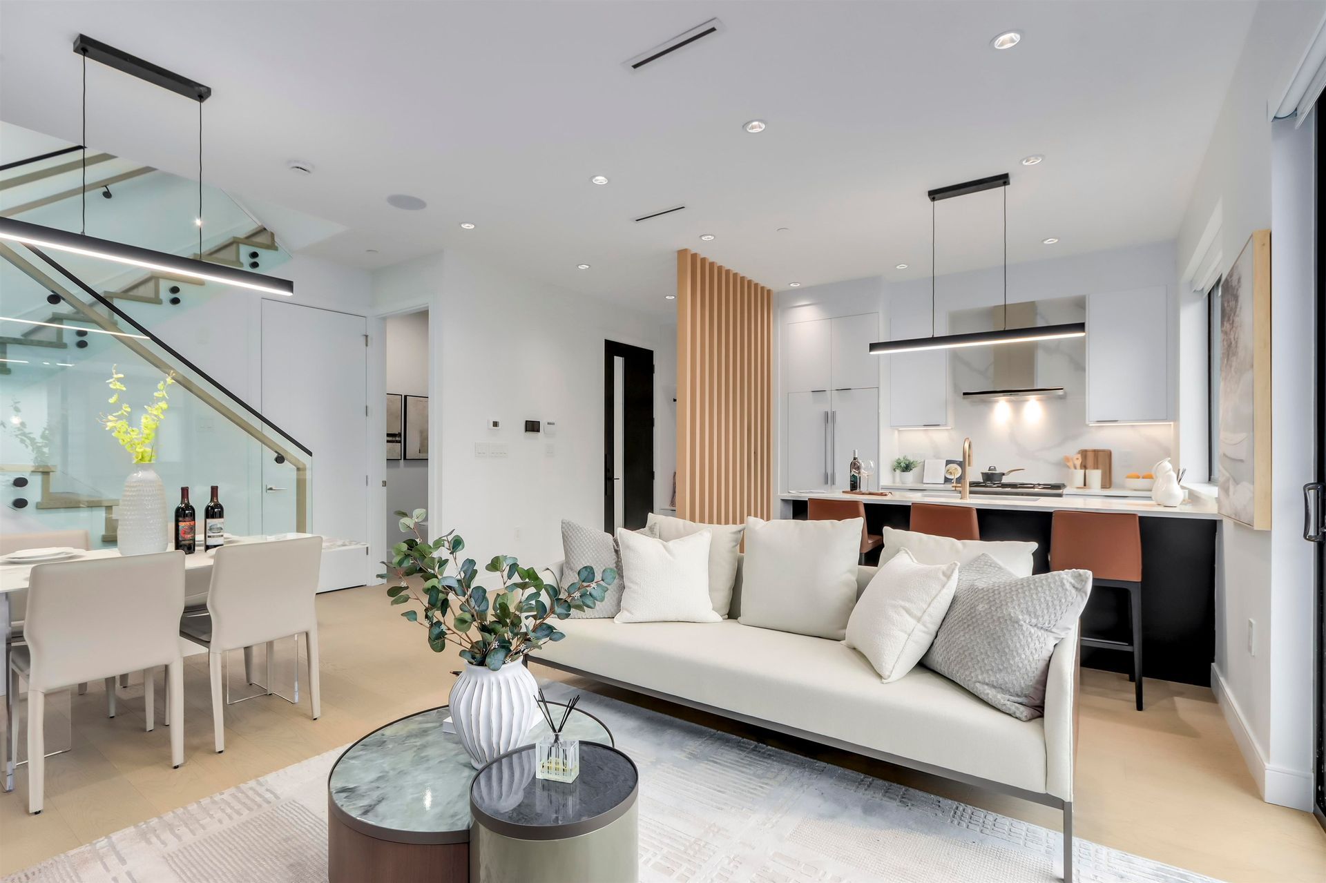Experience luxury living with Esenta Development's latest offering. Contemporary and modern in style, this 3-level BACK UNIT home features 3 spacious bedrooms, ALL with ensuite bathrooms, a beautifully curated rear yard with lots of privacy, tons of natural light and peak-a-boo mountain views. Features include custom millwork and cabinetry throughout, spa-inspired bathrooms, a high-end kitchen with Fisher-Paykel appliance package, in-floor radiant heat and air conditioning, unique top-floor flex/office space and secure single-car garage. Kitty corner to Sir Alexander Mackenzie Elementary and close to transit.
